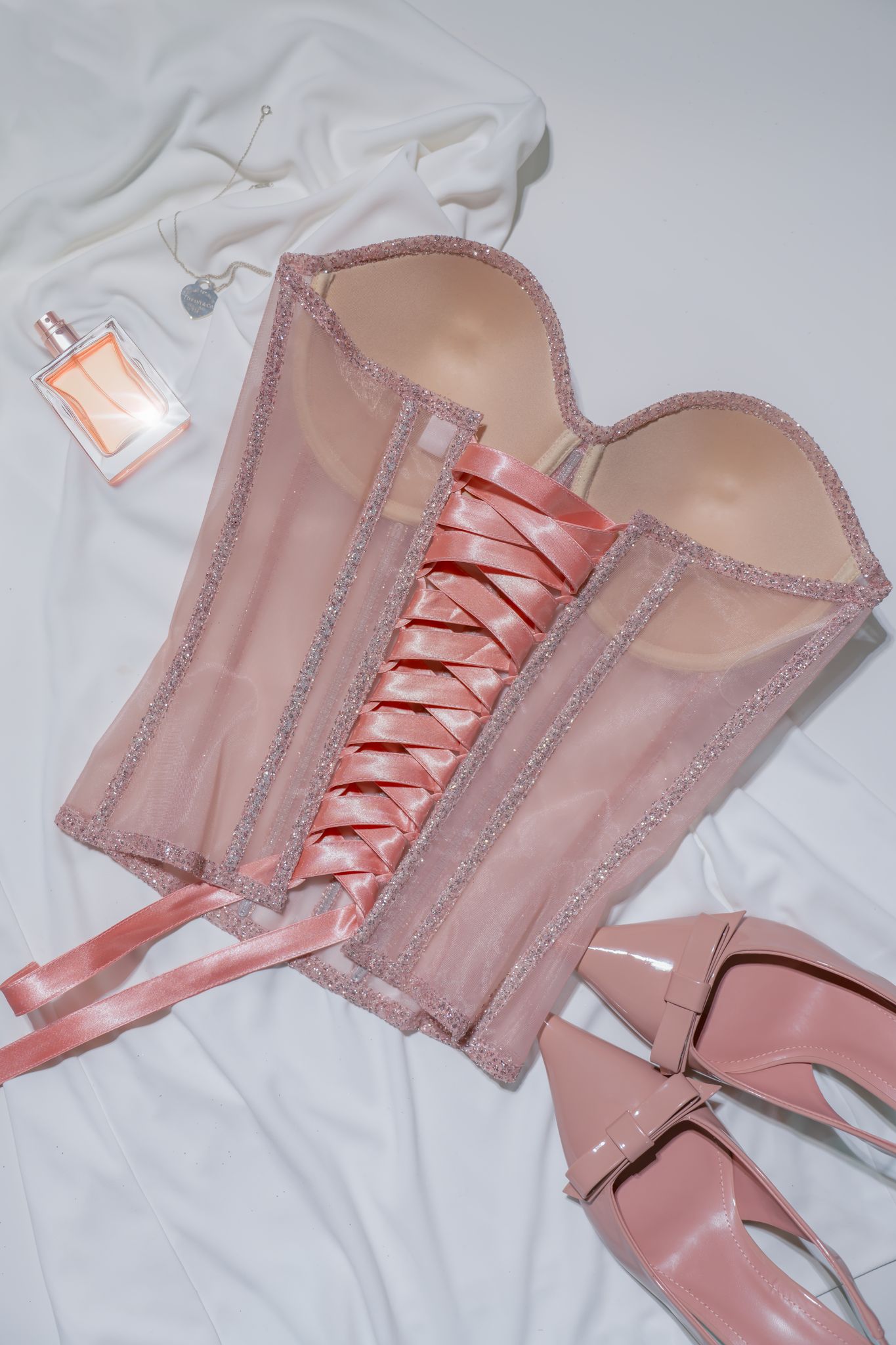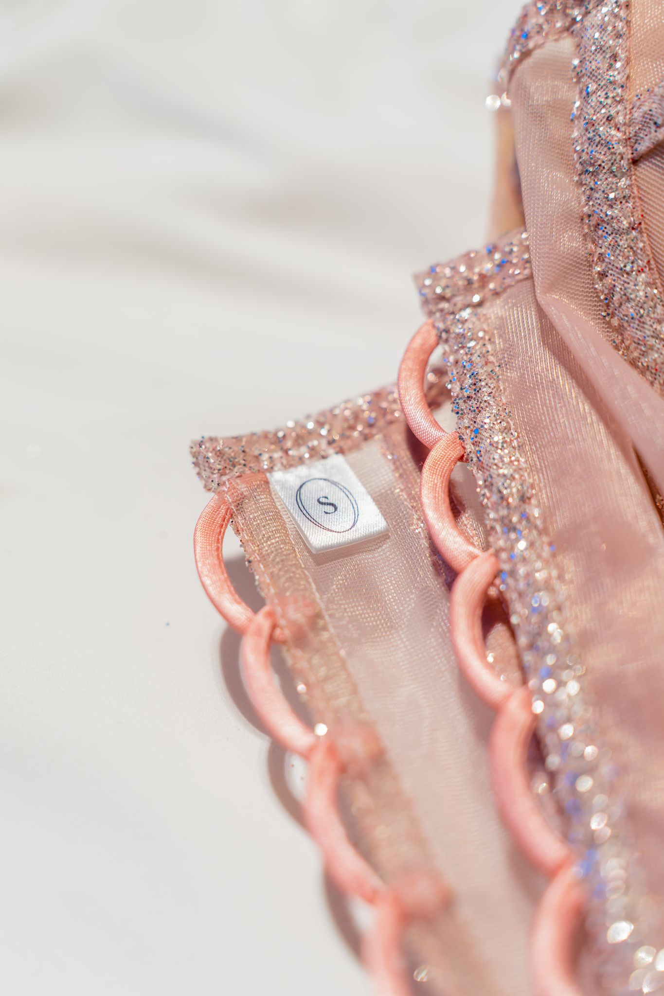 Sylvia midi to romantyczny i subtelny gorset w odcieniu pudrowego różu, który łączy w sobie delikatność siatki gorseciarskiej z wyrazistością brokatowej lamówki. Ten model jest stworzony dla kobiet, które kochają pastelowe odcienie, ale nie boją się błyszczeć. Dzięki dopracowanej konstrukcji podkreśla sylwetkę i dodaje stylizacji wyjątkowego uroku.