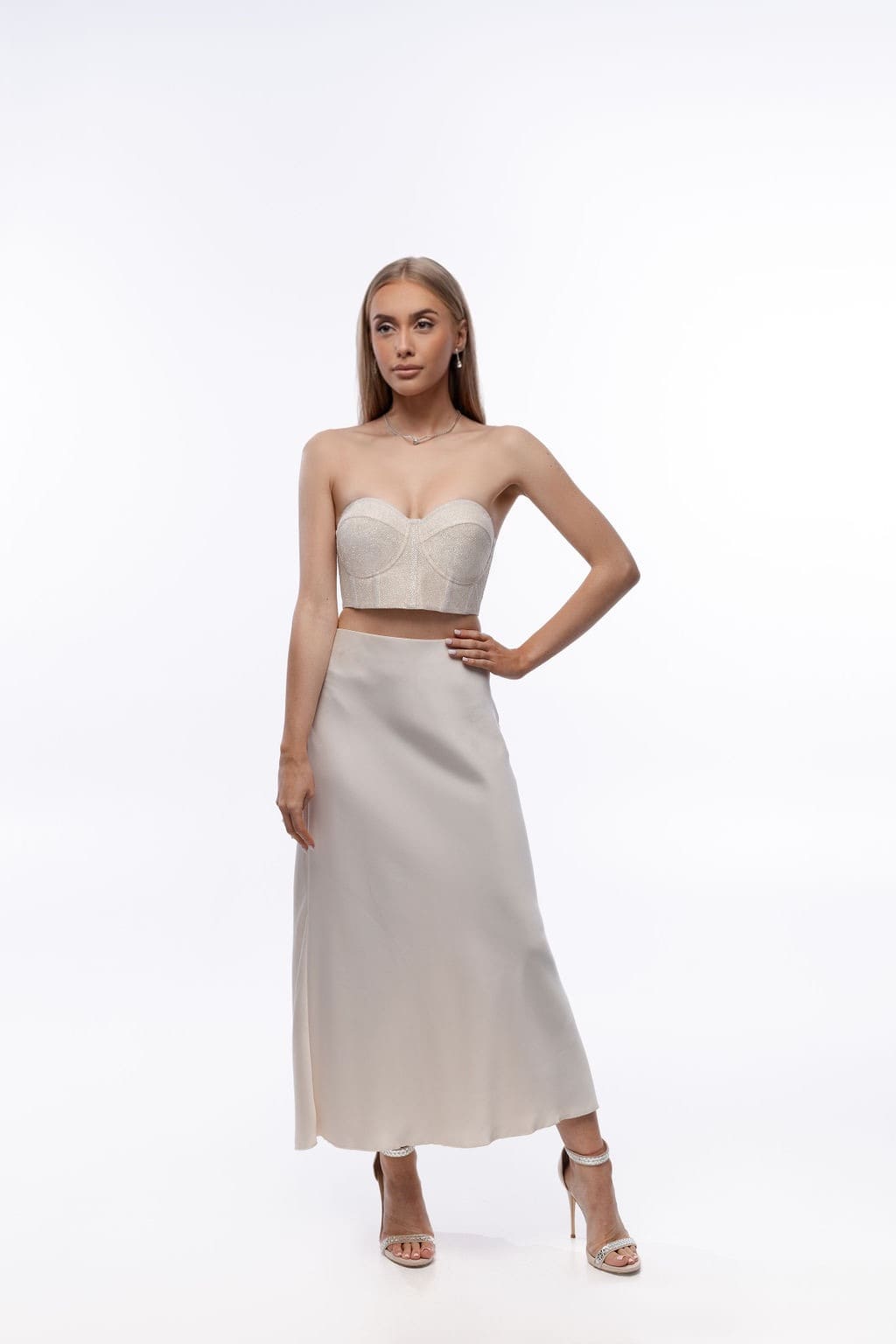 Odkryj krótki gorset Stardust w odcieniu mlecznym – połączenie subtelnego uroku z luksusowym brokatowym wykończeniem. Ten model zachwyca minimalistycznym designem i ponadczasową elegancją, idealny na wyjątkowe okazje i codzienne stylizacje z nutą wyrafinowania.